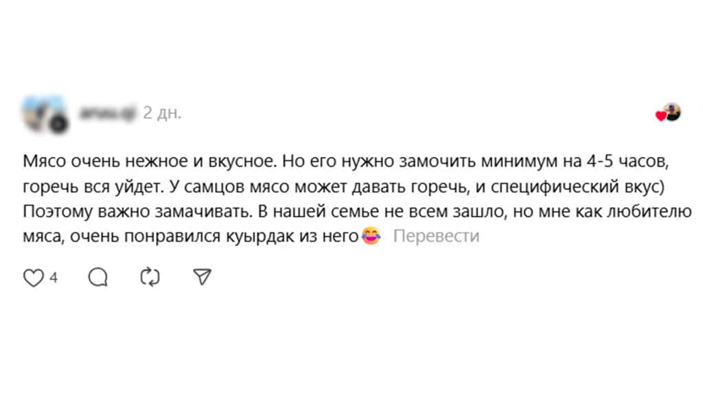 Пользователь соцсети Даулет Оспанов опубликовал пост с фото сайгачины, которую нашел в продаже в одном из магазинов по цене 2,6 тыс. тенге за килограмм. Он попросил казахстанцев поделиться мнением о вкусовых качествах этого мяса и заинтересовался, почему оно такое дешевое. Пост стал вирусным в Threads и собрал более 200 комментариев.