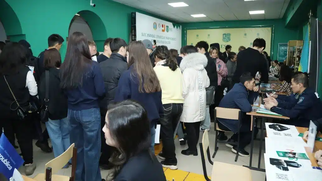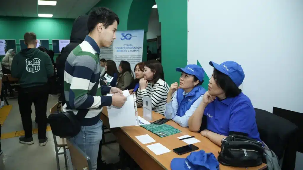 На ярмарке можно было встретить представителей «Казпочты», «Казахтелекома», департамента полиции и прокуратуры, а также частной компании STEM Academia и молодежного крыла партии Respublika, которые предлагали стажировки с последующим трудоустройством.