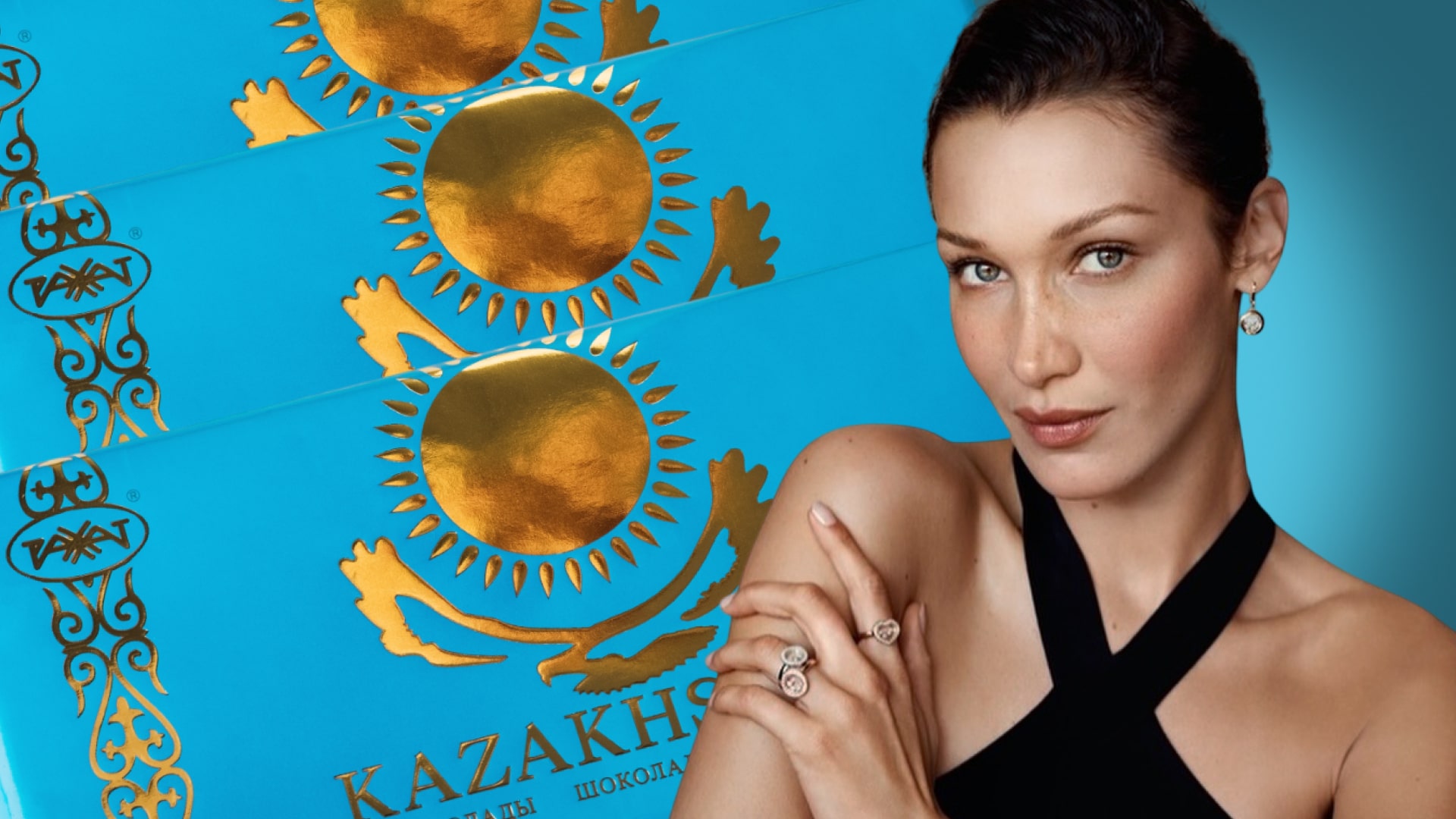 Казахстанка подарила супермодели Белле Хадид национальный презент. Kursiv LifeStyle рассказывает, манекенщица получила шоколад «Казахстан».