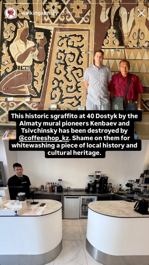 Сеть кофеен в Алматы обвинили в уничтожении исторического сграффито
