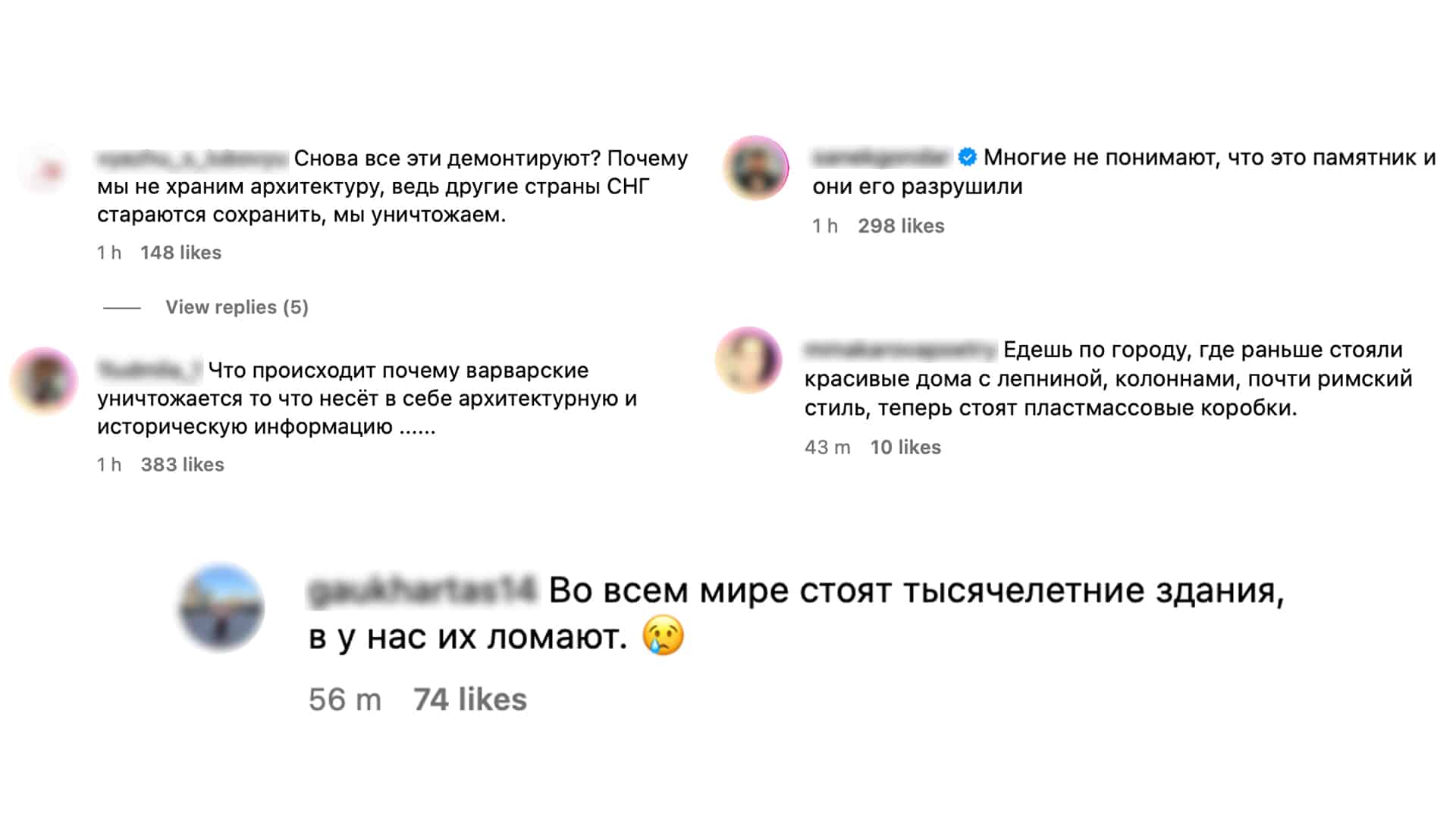 Пользователи соцсетей разделили мнение Санжара Бокаева. В комментариях пишут, что такие работы портят архитектуру Алматы. Многие призывают остановить реконструкцию и обсудить ее с архитекторами и горожанами.