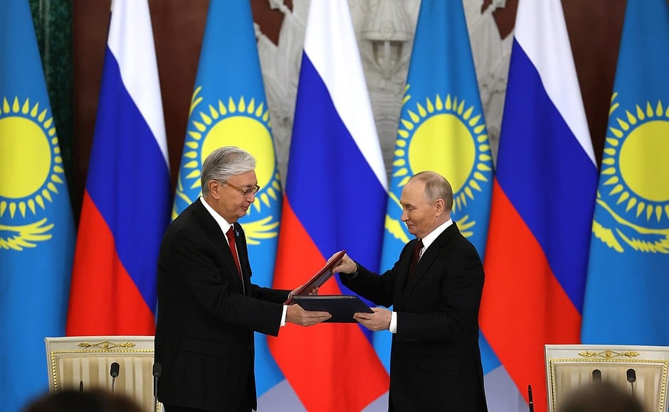 Президенты Казахстана и России подписали Декларацию о переходе отношений между странами на уровень стратегического партнерства и союзничества, сообщает Акорда.