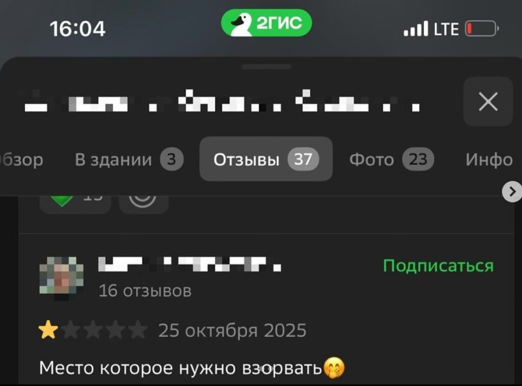 21-летний житель Алматы в отзывах 2GIS к организации, связанной с деятельностью религиозных объединений, написал, что это место нужно взорвать. Его задержала полиция.