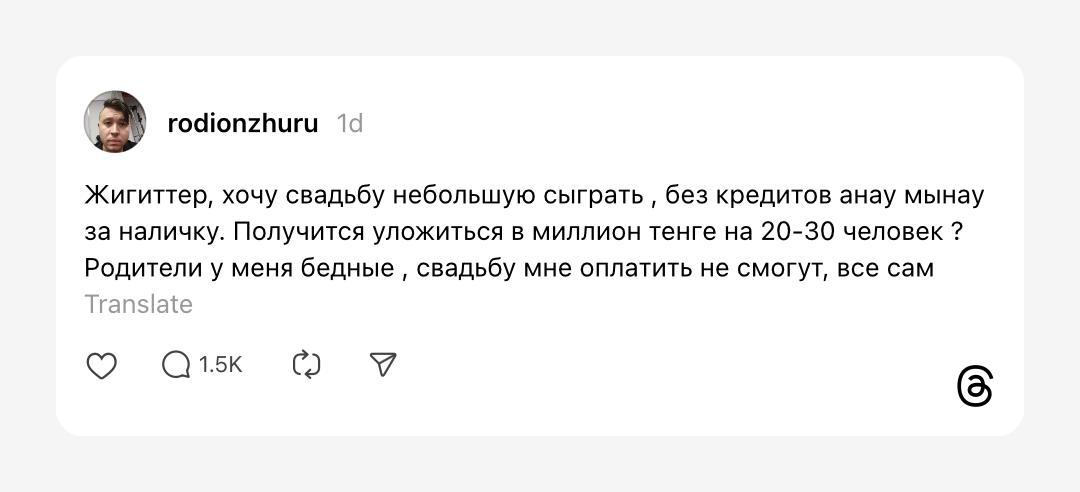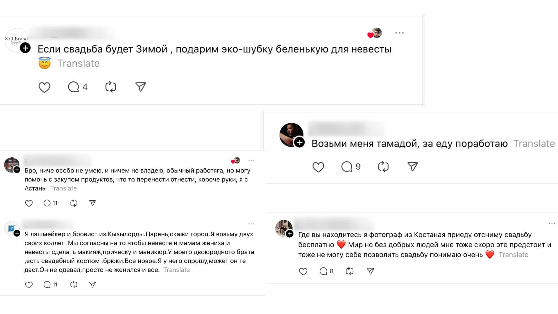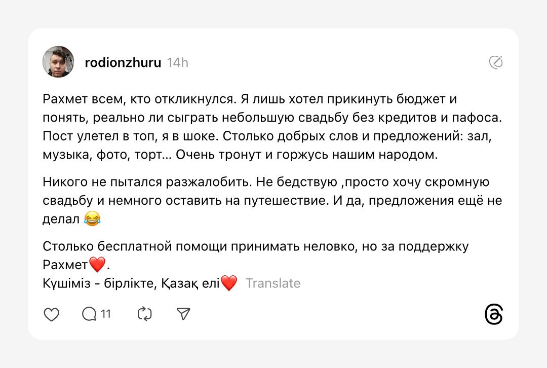 Казахстанцу помогли организовать скромную свадьбу без затрат в Threads