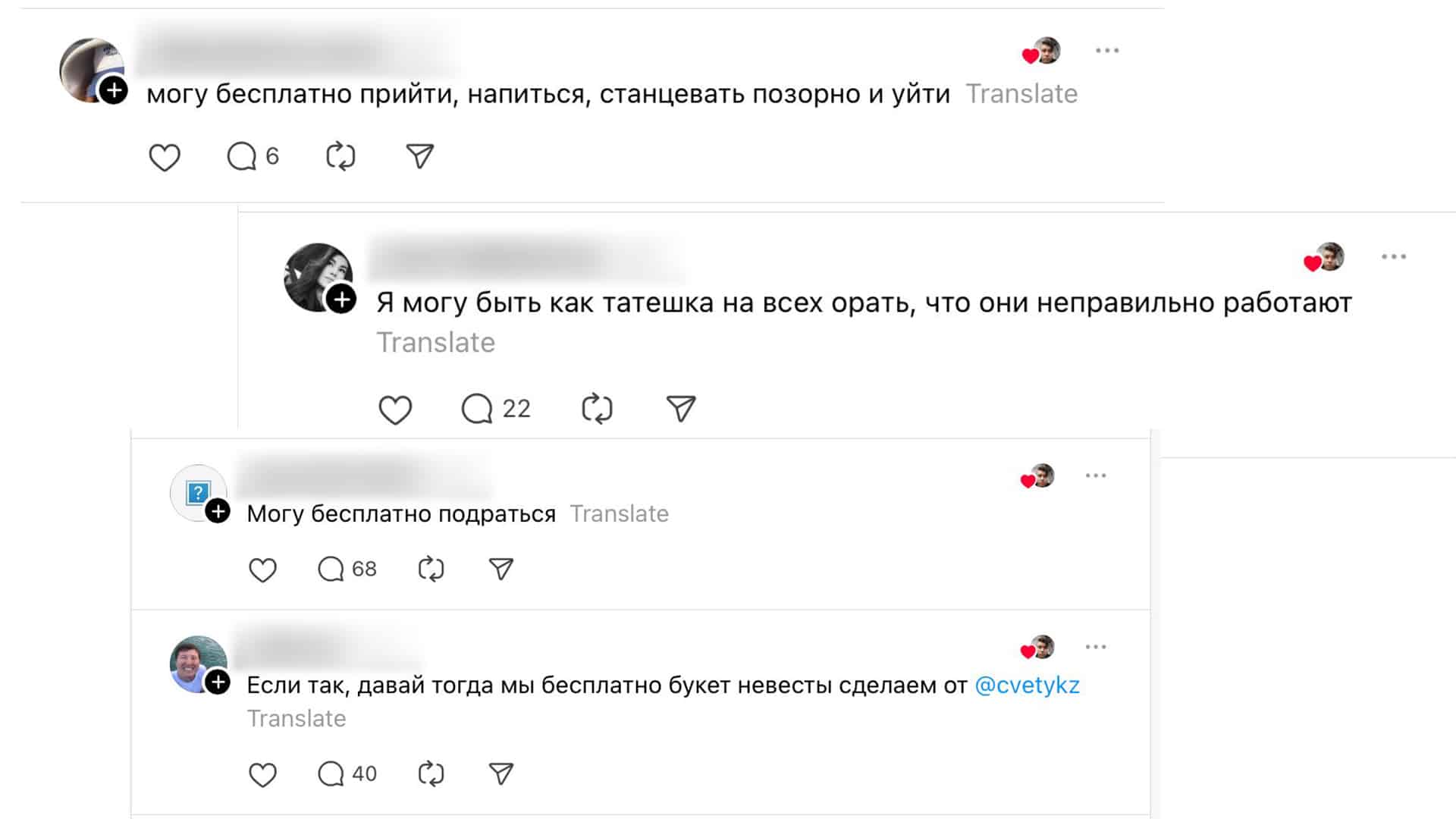 Были и комичные предложения. Некоторые пользователи хотели не только помочь с организацией, но и «стать гостями» прямо по записи в комментариях. Другие шутили, что готовы приехать «поскандалить, подраться и создать правильную атмосферу настоящего тоя».