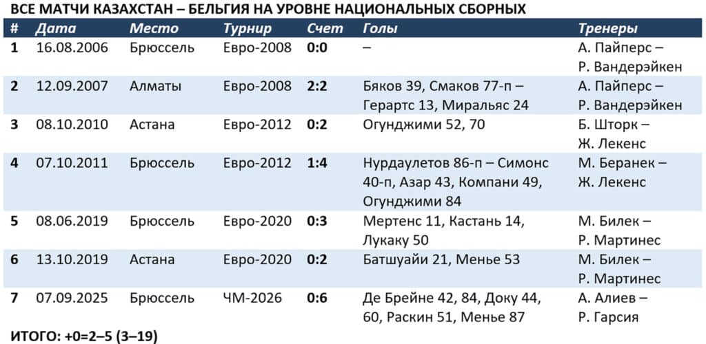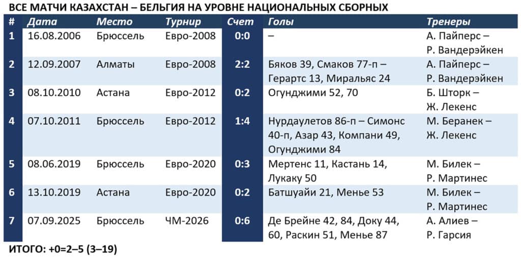 Взаимоотношения сборных Казахстана и Бельгии, поначалу паритетные, ныне приятными для нас не назовешь. Две ничьи сборной Арно Пайперса в квалификации Евро-2008 сменились унылой серией из пяти поражений подряд. Трудно ожидать чего-то иного в матчах шестой команды рейтинга ФИФА со 109-й. Однако во времена голландца у руля соотношение позиций команд в мировой табели о рангах было примерно таким же. Что не мешало Самату Смакову и компании добиваться результатов.