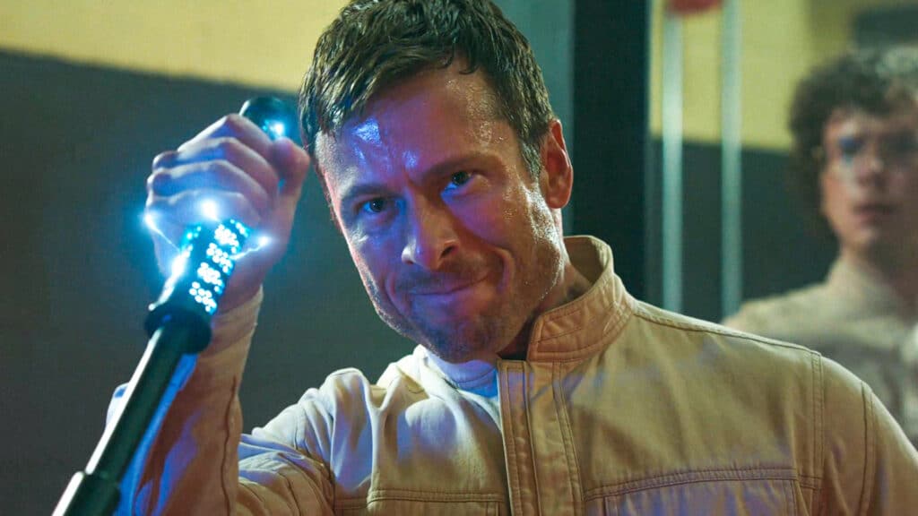 Гленн Пауэлл, которого периодически прочат в новые Джеймсы Бонды, особенно после фильма «Топ Ган: Маверик», ради этой роли раскачался еще больше, в одной из долгих сцен представая лишь в полотенце, а потом и без оного, и вновь напоминая о Шварценеггере – только из первого «Терминатора».