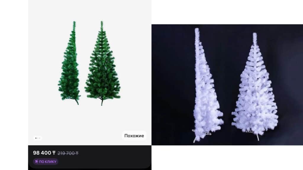Стоимость «елок-половинок» варьируется от 75 до 320 тыс. тенге — в зависимости от высоты и типа искусственной хвои. Получается, что экономится только пространство, но вовсе не бюджет: за «половину» дерева нередко просят цену, которая в разы дороже обычной полноценной ели.