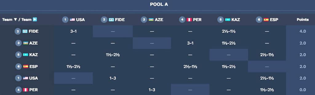 США – ИСПАНИЯ 2,5:1,5. АЗЕРБАЙДЖАН – ПЕРУ 3:0