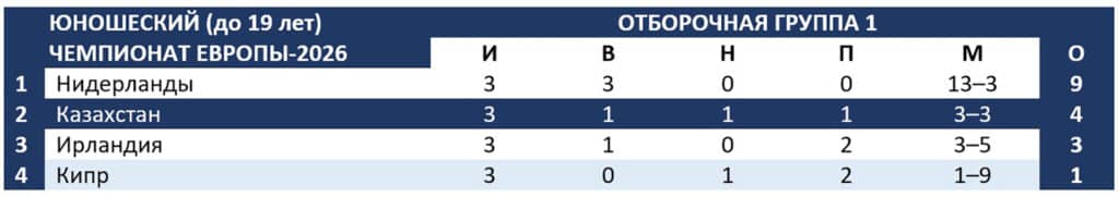 Юношеская (до 19 лет) сборная Казахстана по футболу не удержала победу над Кипром (1:1) в последнем матче отборочной группы Евро-2026. Тем не менее, благодаря победе Нидерландов над Ирландией (4:2), наша команда вышла во второй раунд. Один из голов «Оранжевых» на счету Шейна Клюйверта, сына Патрика Клюйверта из золотого поколения «Аякса».