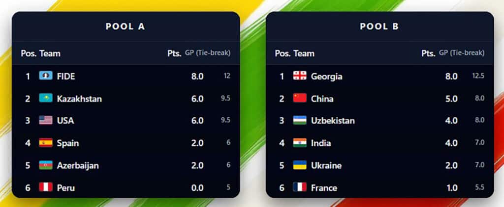 ГРУЗИЯ – УКРАИНА 2,5:1,5, КИТАЙ – ИНДИЯ 2:2, УЗБЕКИСТАН – ФРАНЦИЯ 3:1