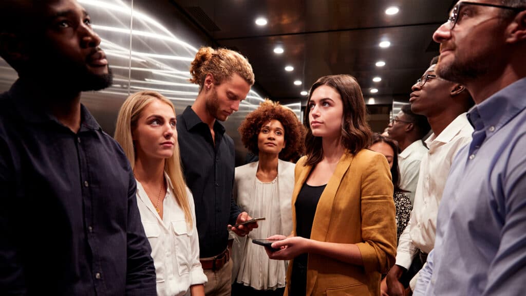 Приветствие уместно только в отношении знакомых. В переполненном лифте обмен формальностями со всеми пассажирами обычно не требуется.