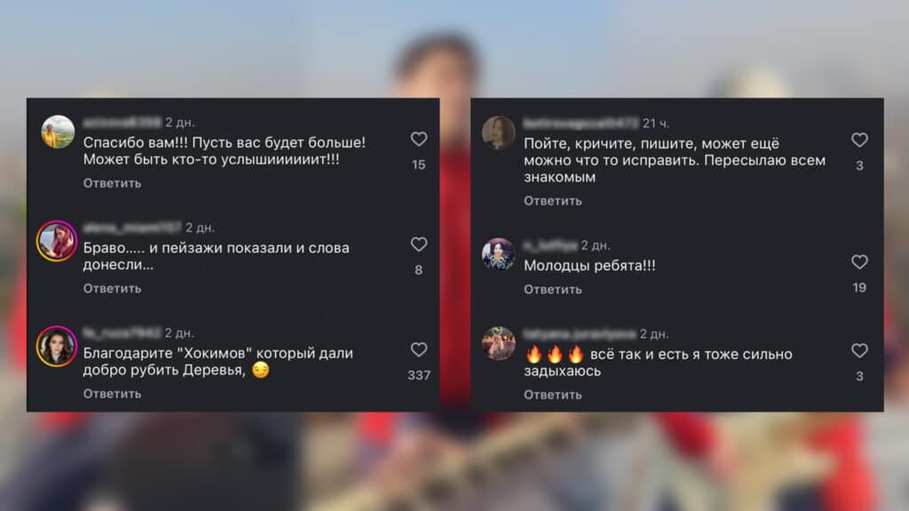 В подписи к ролику авторы написали: «Я люблю свой родной город, но если это будет продолжаться, некому будет его любить». После публикации видео моментально разошлось и вызвало бурную реакцию пользователей. Люди пишут, что тяжело дышат и вспоминают «зеленый Ташкент».