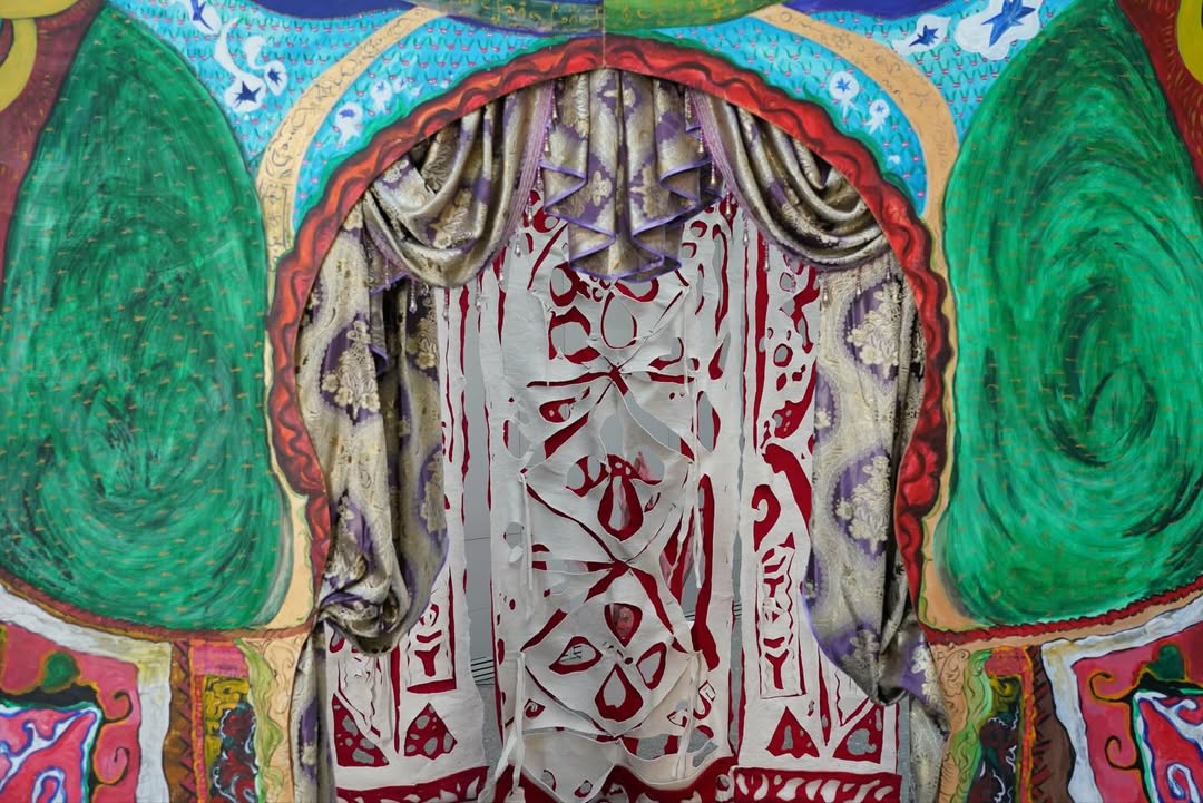«Чудо» — это крупная пространственная инсталляция, созданная в смешанной технике. В ее состав входят вручную расписанные деревянные панели, декоративная арка, орнаментальные ткани и войлок. Центральный световой объект работы — звезда из веток и полупрозрачной ткани.
