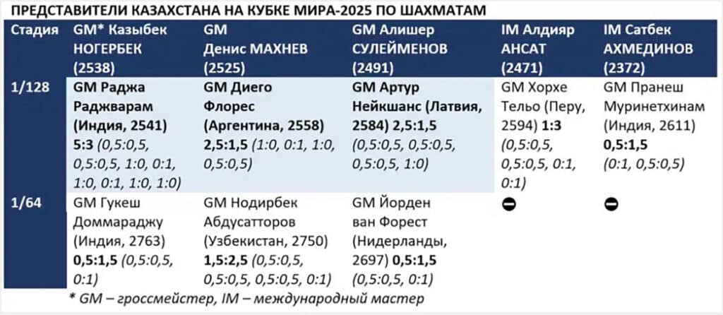 В Кубке мира для женщин принимало участие трио казахстанских шахматисток. Успешнее всех выступила 19-летняя Меруерт Камалиденова (2330), едва не пробившаяся в четвертьфинал. Ее ровесница Амина Каирбекова проиграла в первом круге, а 15-летняя Елназ Калиахмет – в третьем.