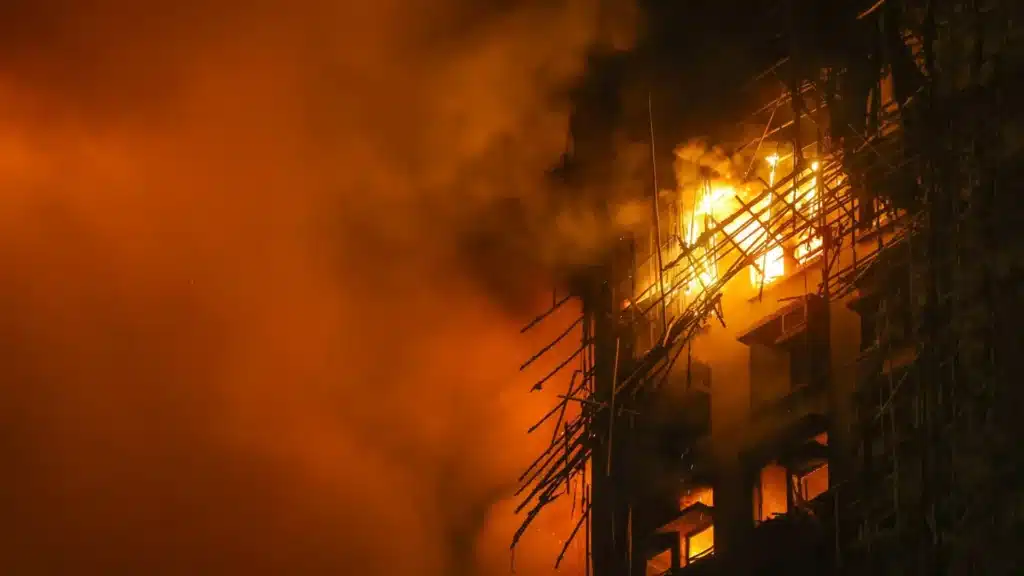 Последние видеозаписи показывают, как спасатели продолжают в темноте искать людей в отдельных квартирах. В некоторых окнах все еще были видны оранжевые языки пламени, хотя большая часть комплекса уже представляла собой обугленные руины.
