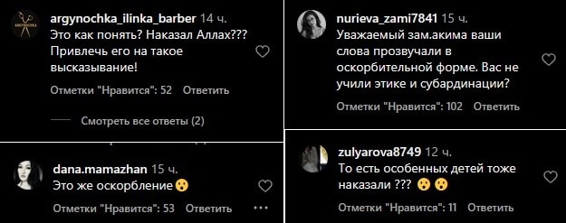 Запись со словами чиновника распространилась в социальных сетях. Люди с инвалидностью назвали высказывание унизительным и оскорбительным. В комментариях пишут, что Есболатов не имеет права так говорить, особенно на встрече, куда люди пришли решать свои проблемы. Многие требуют немедленных публичных извинений и дисциплинарного взыскания.