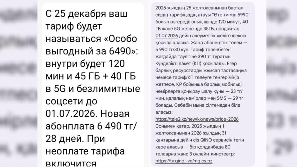 По другому архивному тарифу – «То, что надо» – стоимость увеличится с 5 490 до 6 490 тенге (сам тариф сменит название на «Особо выгодный»), то есть на 1 тыс. тенге (+18%). При этом этот же тариф в апреле 2025 года уже успел подорожать на 1,4 тыс. тенге (ранее стоимость составляла 4 тыс. тенге).