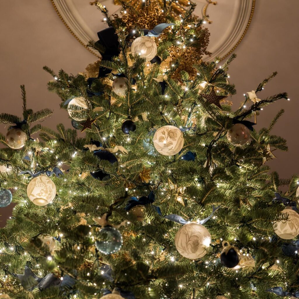 Как сообщает USA Today, праздничное убранство в этом году отдает дань уважения военным семьям и отмечает 250-летие США. В Белом доме установили 51 елку. Главная украшает Голубую комнату: она более 5,5 метра высотой, а украшают еще 2 800 золотых звезд — символов семей, потерявших близких на службе. Украшения представляют официальный цветок и птицу каждого штата и территории, подчеркивая стойкость и дух страны.