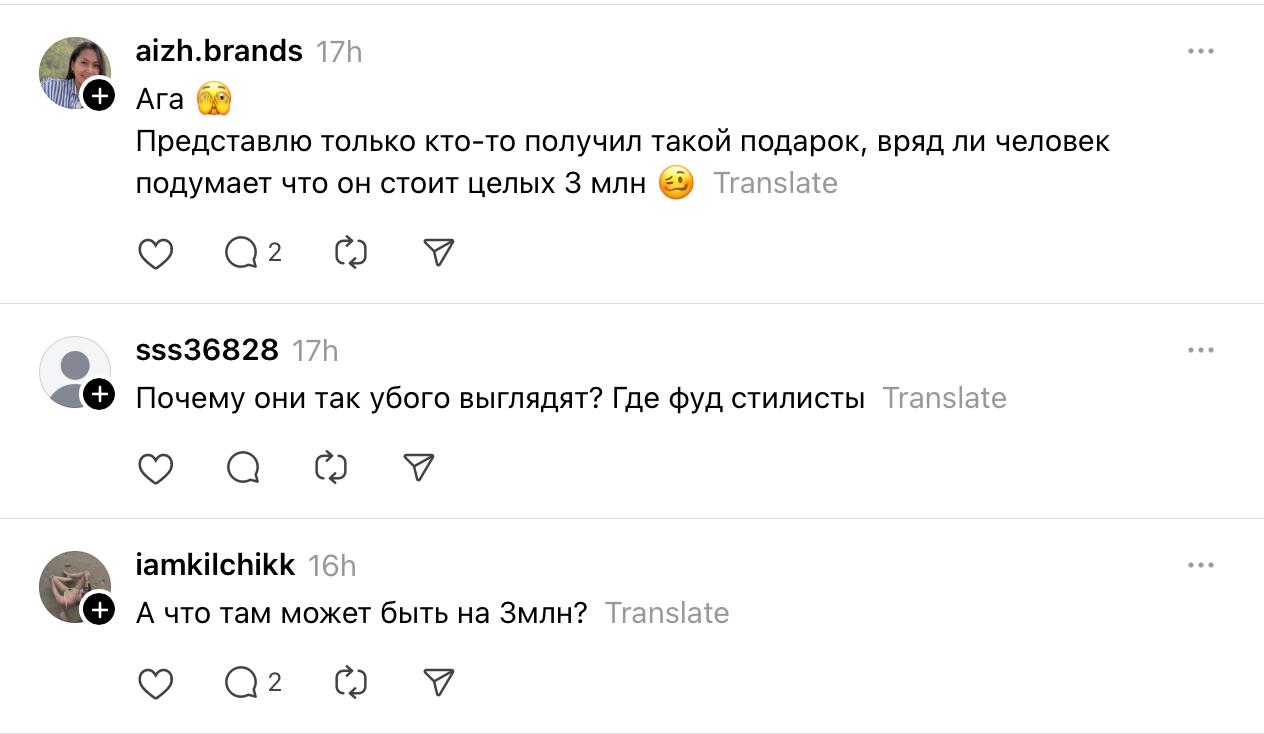 Пользователей соцсетей подобные корзины, даже за 1,5–3 миллиона, не впечатлили. Многие отмечали, что состав слишком обычный и не соответствует цене.