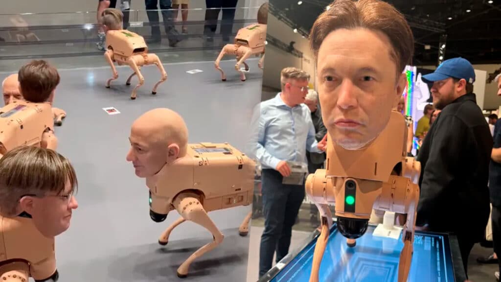 Жутких робособак с головами миллиардеров распродали на выставке за $100 тыс.