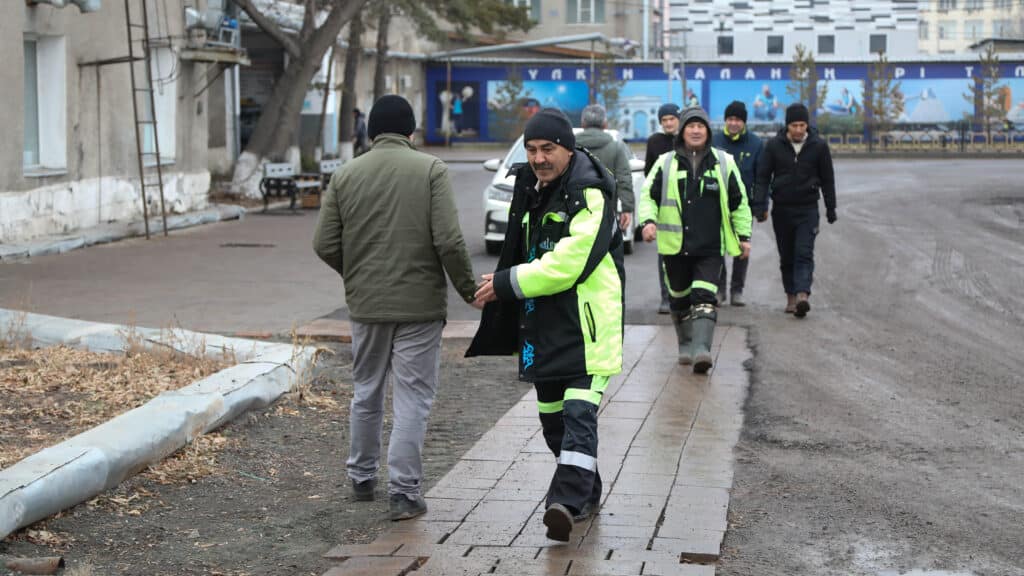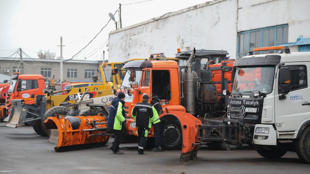 База ТОО «Астана Тазалық» находится в районе улицы Акжол, 49/2 — за шлагбаумом КПП открывается просторная территория с десятками ярко-оранжевых спецмашин, выстроенных в ряд. На базе многолюдно и даже тесновато, большая часть сотрудников находится на дежурстве в ожидании снега.