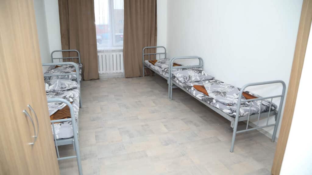 Там в этом году за счет экономии провели ремонт. В комнатах по несколько кроватей и есть зал с тренажерами, где рабочие могут заниматься спортом.