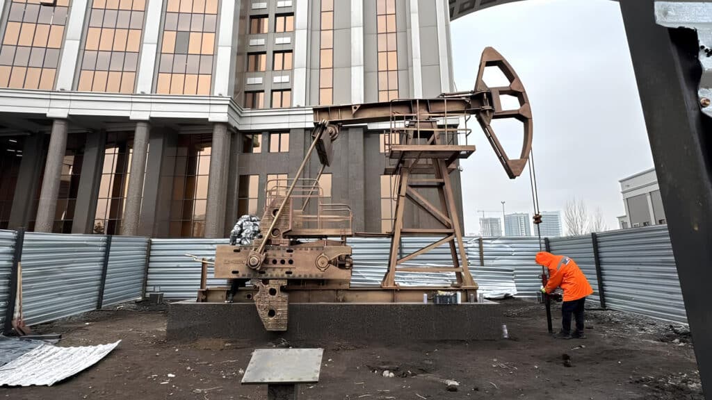 У офиса Минэнерго в Астане устанавливают нефтяную мини-вышку