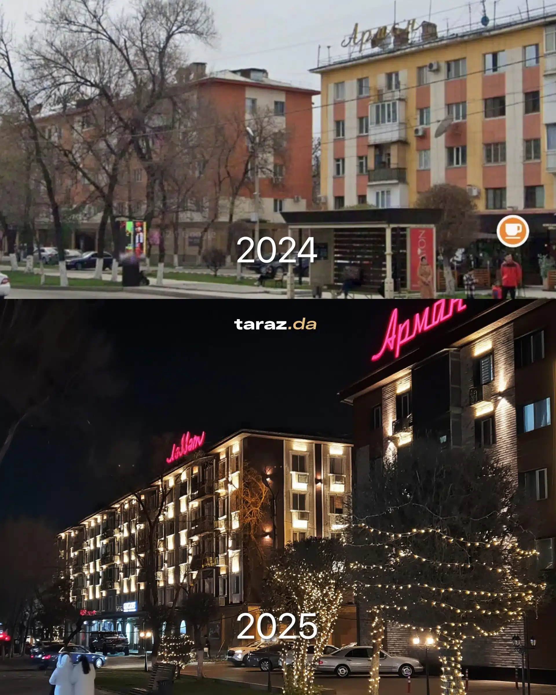 Преображенные дома уже стали новой фотозоной. Жители специально приезжают, чтобы поснимать вечерние обновленные улицы и убедиться, что это Тараз, а не картинки, сделанные в помощью искусственного интеллекта.