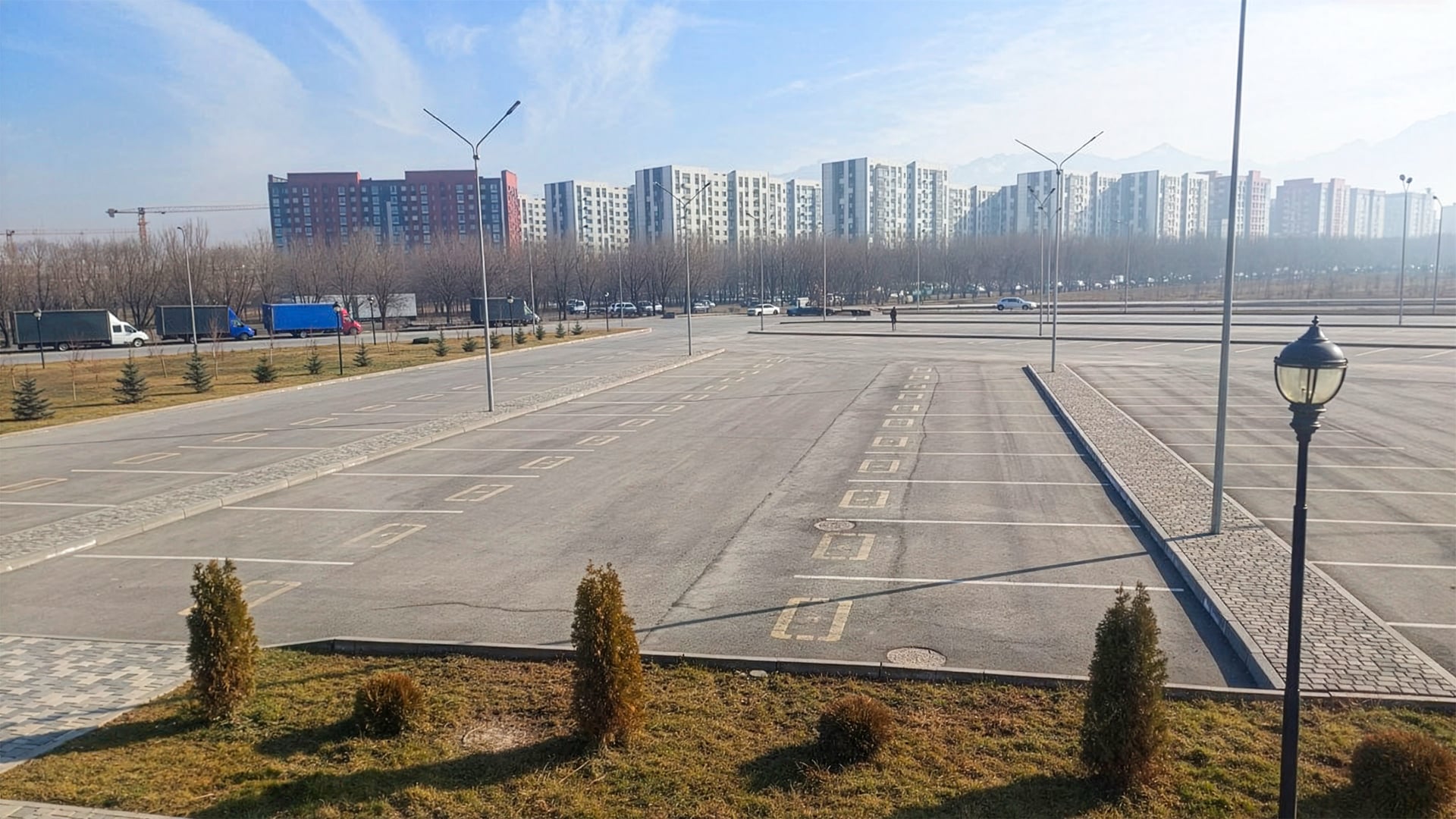 На территории еще не открытого храма есть просторная парковка, явно рассчитанная на сотни автомобилей.