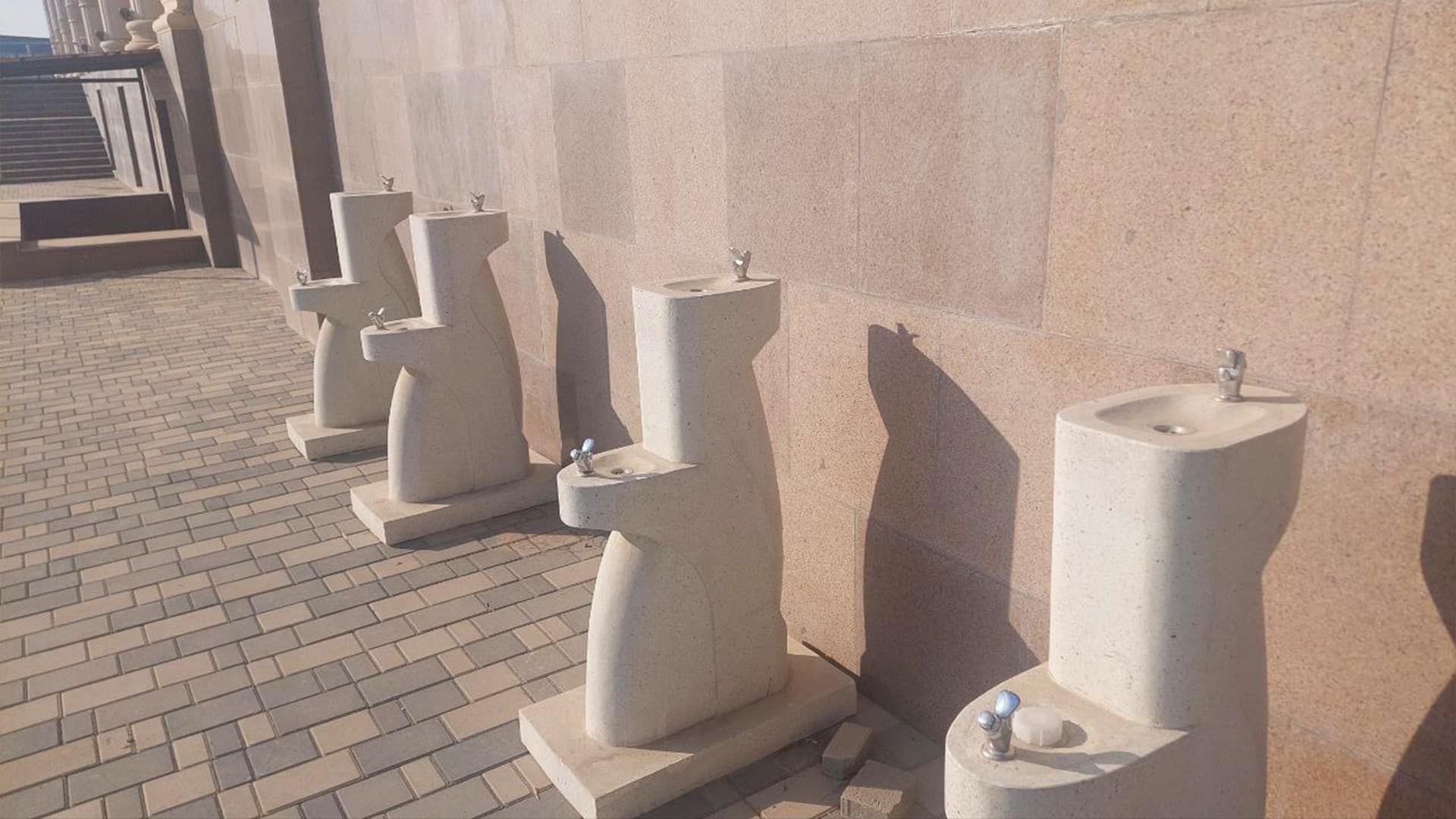 Рядом с парковкой установлены несколько питьевых фонтанчиков, по дизайну рассчитанных как на взрослых, так и на детей.