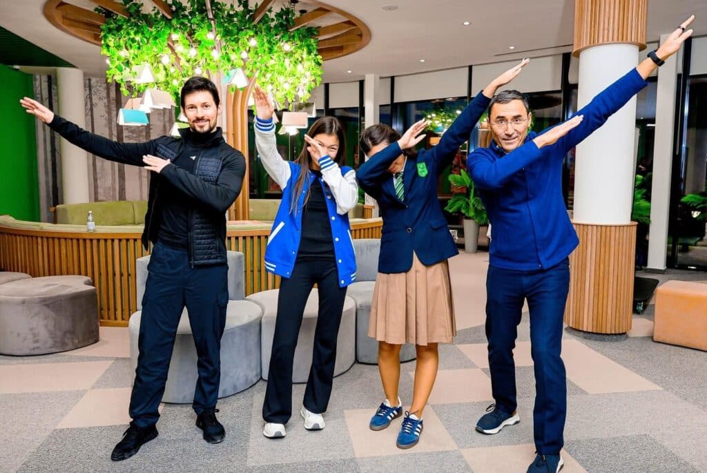 На фотографии, приложенной к посту, Айдын Рахимбаев стоит вместе с дочерью, ее подругой и основателем Telegram Павлом Дуровым. По словам миллионера, Дуров удивился, узнав, что его дочь вместе с ребятами из сел живет в Боровом.