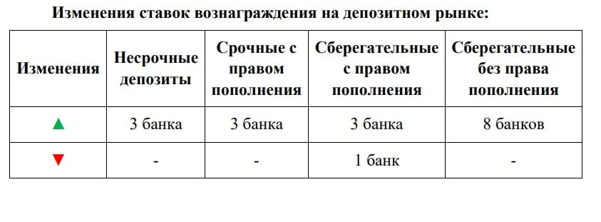 Банки продолжают повышать ставки по депозитам вслед за ростом базовой ставки. Часть игроков увеличила доходность еще в октябре после ее повышения с 16,5% до 18%, другие – только после решения Нацбанка 28 ноября. В результате ставки выросли у трех банков по несрочным, срочным и сберегательным вкладам с пополнением, а по непополняемым сберегательным – у восьми банков.