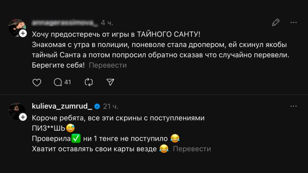 Некоторые пользователи уже начали рассказывать об историях, где игроки в «Тайного Санту» стали невольными участниками дропперских схем. Только в июле 2025 года в Уголовный кодекс ввели статью 232-1, наказывающую за передачу данных карт незнакомцам.