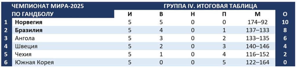 За выход в полуфинал также поспорят Норвегия с Черногорией и Германия с Бразилией.