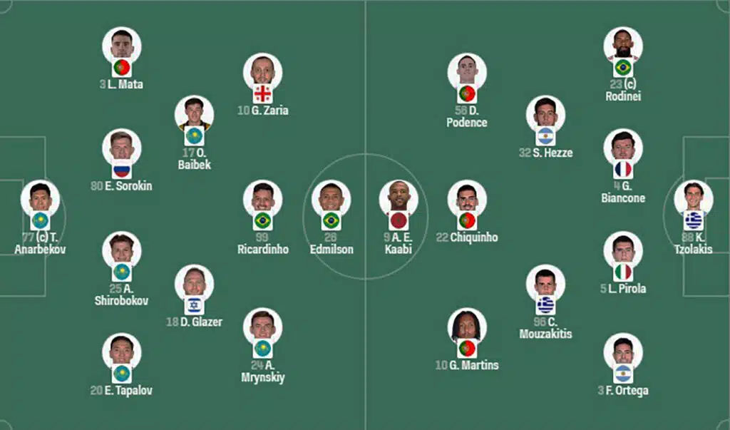 На второй тайм вышли Громыко и Жоржиньо, заменившие не попавших в игру Зария с Рикардиньо. Пока джокеры входили в игру, «Кайрат» от неминуемого пенальти спас только офсайд у марокканского лидера атак греков Аюба Эль-Кааби.