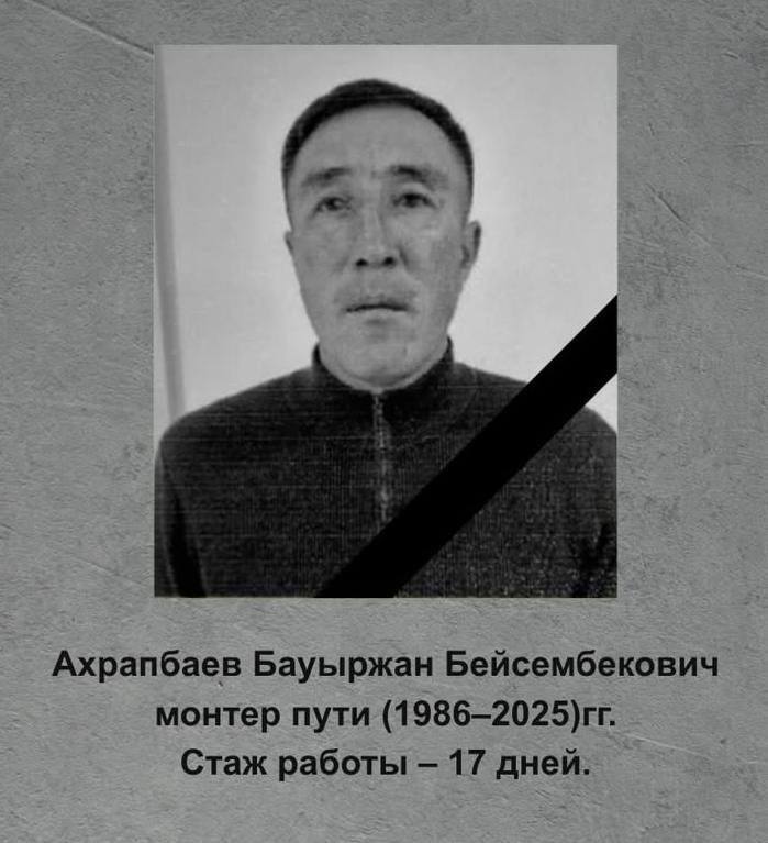 Ахрапбаев Бауыржан Бейсембекович работал монтером пути. Ему было 39 лет, стаж работы составлял всего 17 дней. Погиб при исполнении служебных обязанностей. Мужчина не был женат и проживал вместе с родителями-пенсионерами.