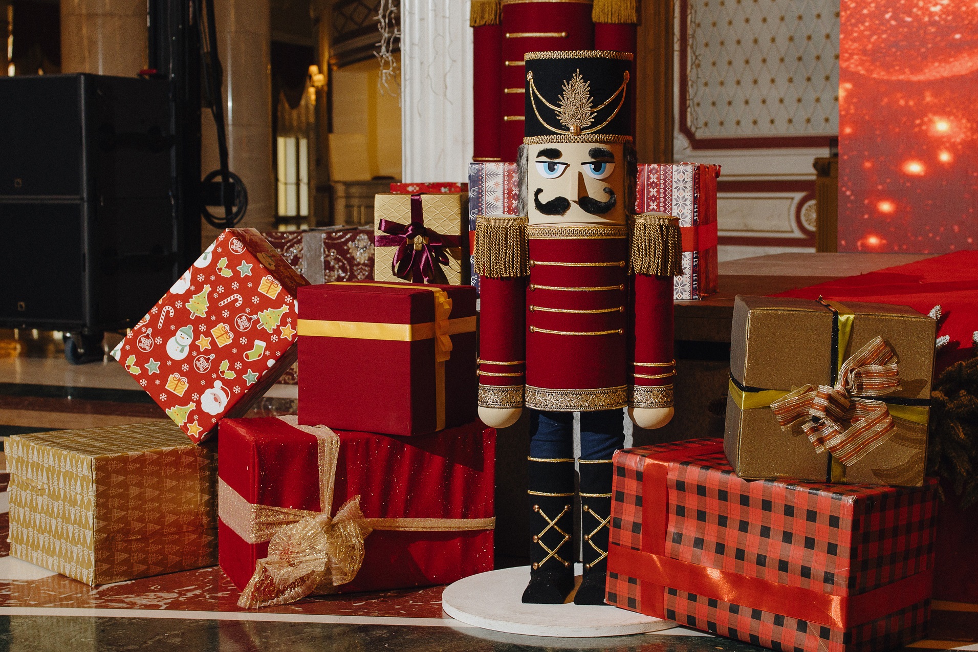 Шоу прошло в Мраморном зале театра, который на время перестроили «Библиотеку искусства». Дети стали участниками представления вместе с героями-актерами. Завершением программы стало зажжение новогодней елки.
