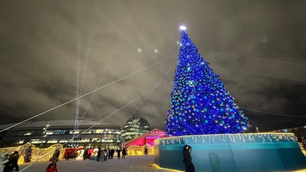 Утро на площади перед сферой «Нур Алем» началось с привычного для столичных жителей снегопада, который лишь подчеркивал установленную здесь главную елку страны. Высокая конструкция в 22 метра еще стояла темным силуэтом, но жизнь вокруг нее кипела с самого рассвета. Технические службы проводили финальную проверку световых панелей, декораторы поправляли огромные красные и золотые банты на массивных декоративных подарках, а ледовары в последний раз поливали поверхность гигантского катка. Коммунальные службы начали тщательно убирать территорию, в готовность пришли служба спасения и сотрудники полиции, следящие за порядком.