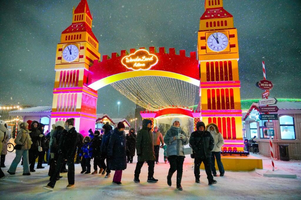 Одной из самых масштабных площадок стала набережная реки Акбулак, где установили 25-метровую елку, несколько катков, снежные горки и тематические фотозоны. Вечер сопровождался концертной программой, аниматорами и появлением сказочных персонажей. Праздник завершился салютом.