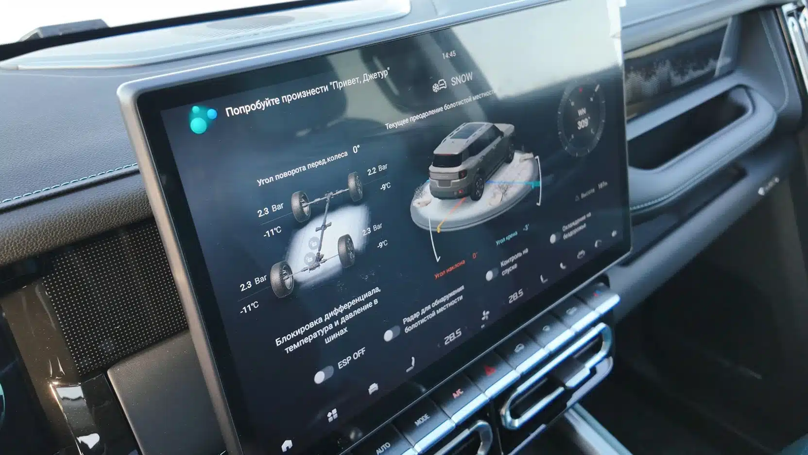 Во время движения по бездорожью система охлаждения муфты работала исправно – перегрева или запаха гари не было. Автоблогеры также отметили, что на приборную панель выводится полезная телеметрия: углы крена, распределение момента и компас.