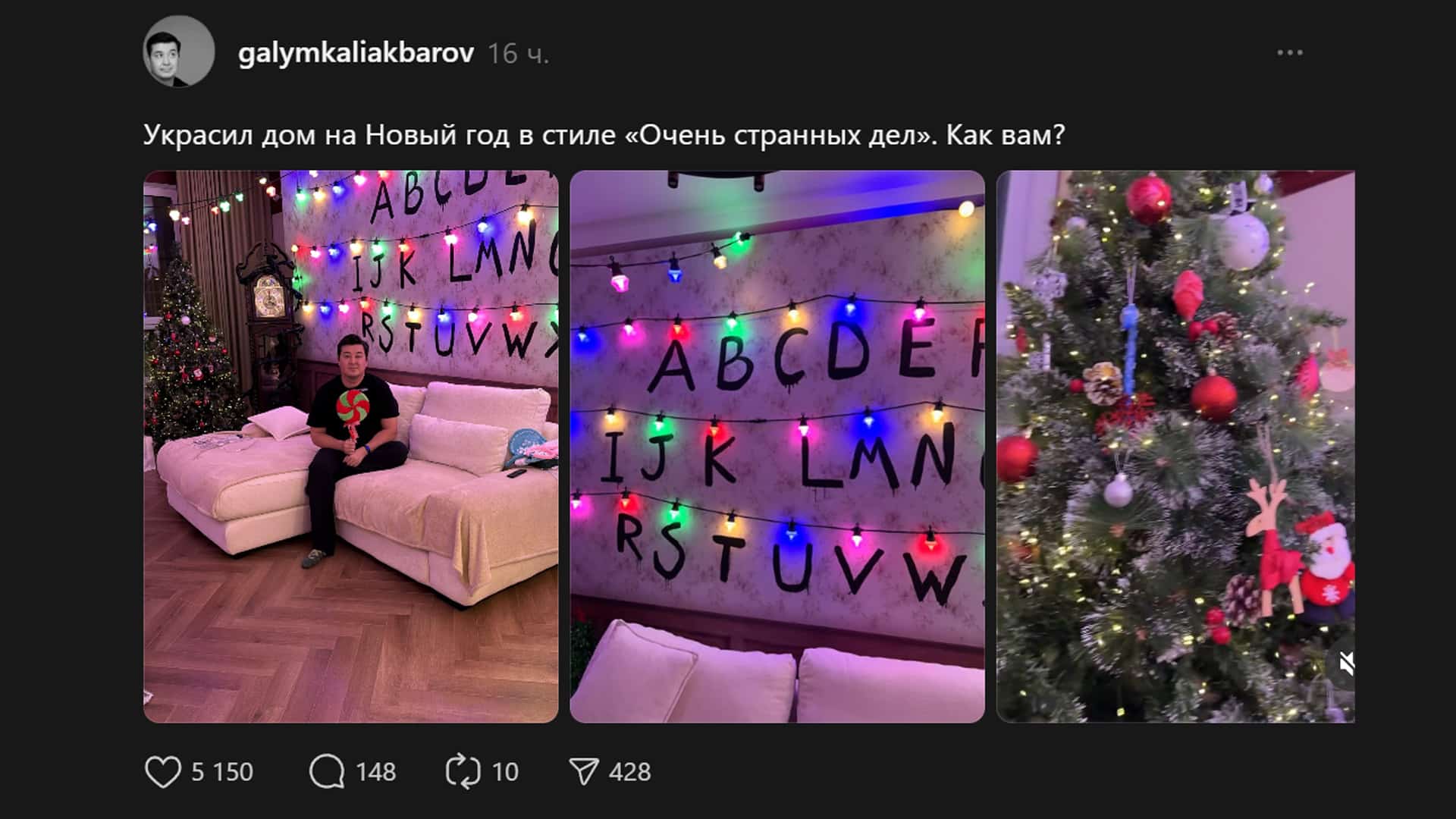 Казахстанский комик Галым Калиакбаров необычно подготовился к Новому году и украсил свой дом в стиле культового сериала «Очень странные дела».