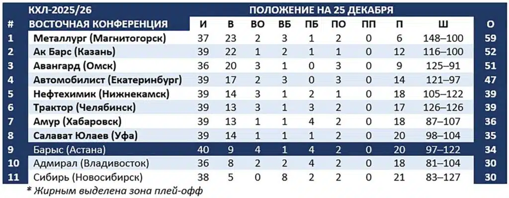 Пока же астанчане упомянутую восьмерку покинули. Более того, по потерянным очкам «Барыс» идет вровень с «Сибирью», последней на сегодня командой Востока.