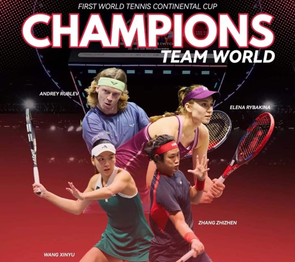 Выставочный турнир World Tennis Continental Cup в китайском Шенчжэне завершился победой сборной мира, за которую выступала казахстанка Елена Рыбакина.