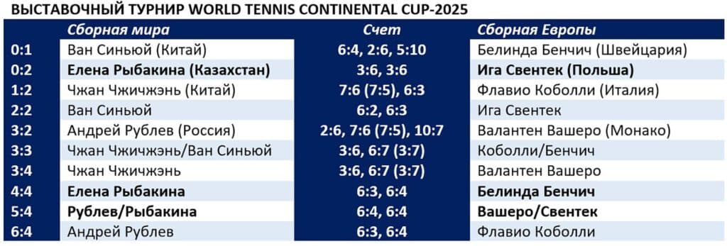 Рыбакина выиграла два матча за день, сборная мира одолела сборную Европы