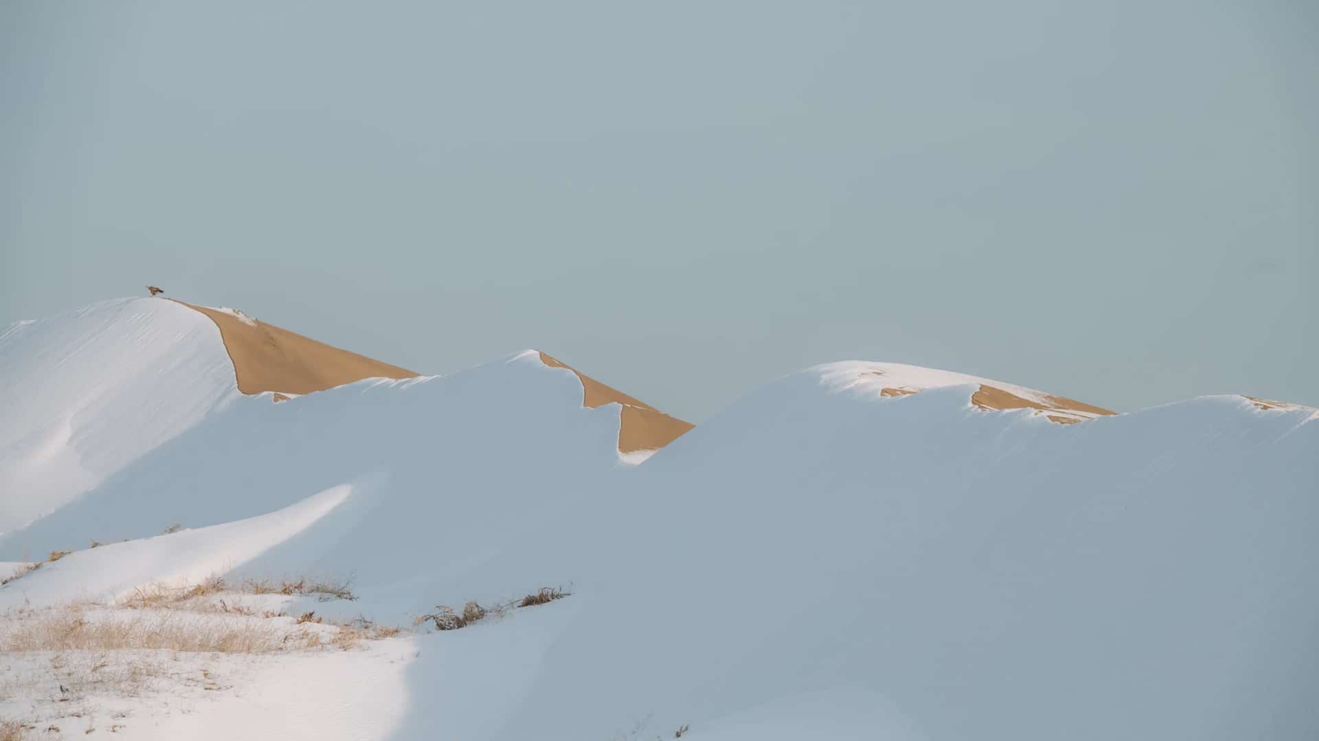 На снимках гладкие песчаные холмы, покрытые тонким слоем снега, из-за чего пейзаж напоминает пустыню после снегопада. В комментариях подписчики сравнивают кадры с барханом Сарыкум в Дагестане и признались, что сначала не поверили, что это Капчагай.