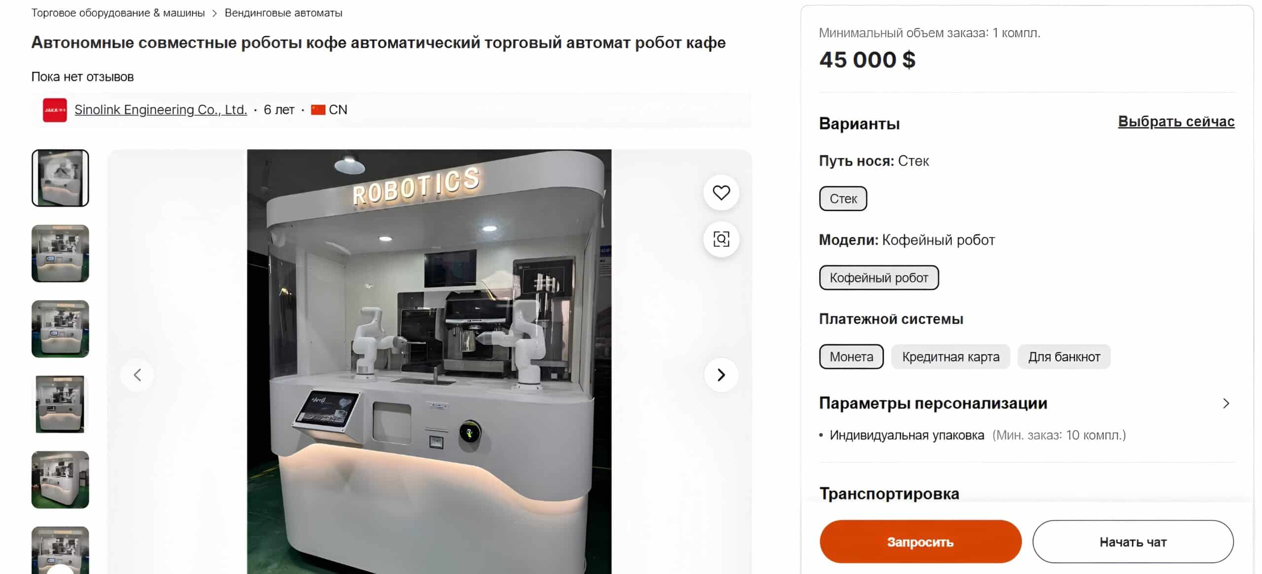 Любопытны и расценки на саму технологию. На Alibaba (крупная китайская площадка для оптовых закупок) стоимость роботов-бариста варьируется от 3,7 тыс. (1,8 млн тенге) до 45 тыс. долларов (22,6 млн тенге) в зависимости от модели и функционала.