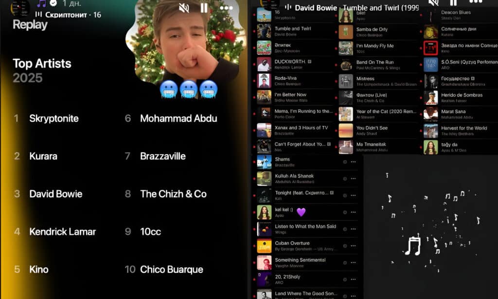 В его топе за 2025 год в Apple Music лидирует рэпер Скриптонит с микстейпом Fantasy Mixtape, Vol.1, а также певица Ayau и ее альбом AYALUM.
