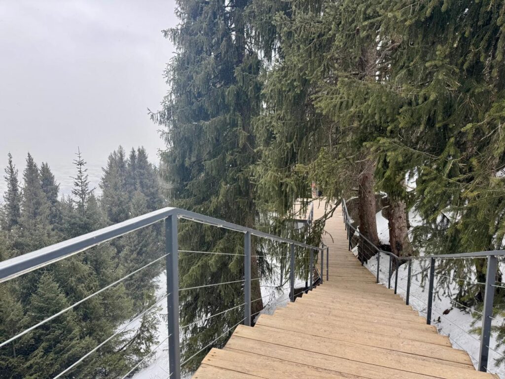 Сделан перрон-накопитель на случай большого наплыва гостей, он же станет зоной проведения мероприятий — например, во время фестиваля горных курортов Евразии (пройдет в Казахстане 23–27 февраля 2026 года). К началу фестиваля должны закончить стройку большого конференц-зала на 250 человек (вход в него прямо с перрона, но пока он скрыт забором).