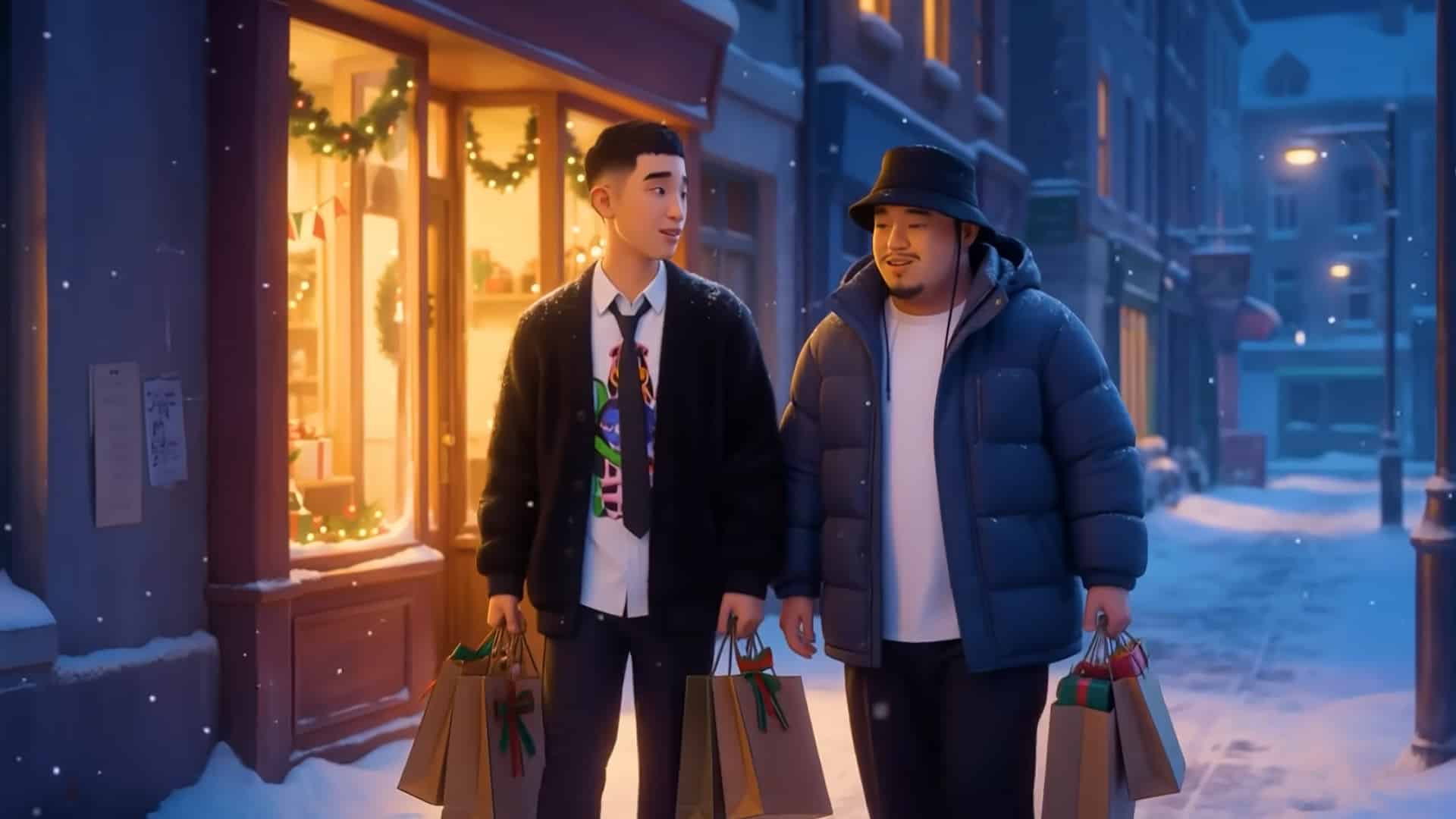 Визуальную часть выполнили в анимационной истории: зимний город, праздничные огни и семейные сцены. В ИИ-визуализации также появляются знакомые лица и символы Казахстана. В кадре можно увидеть артистов Bala, Ace и Zaq из группы Ninety One, а также узнаваемые локации Алматы – Шымбулак и Коктобе.